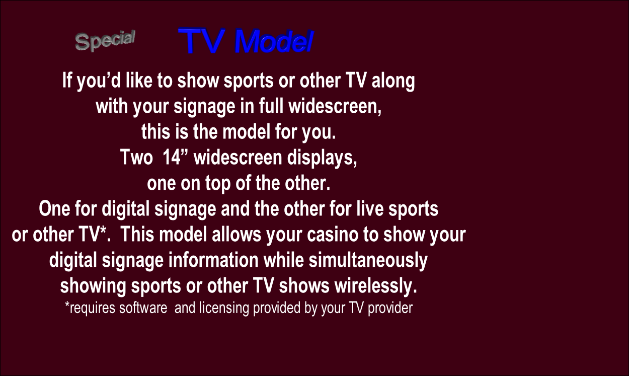 The back of your sign will look as attractive as the front with our custom made “game name” signs. Our “flat back” mounts make it easy to mount a custom game sign. You can either use our graphics or submit your own design with your casino logo.